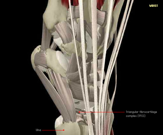 TFCC is located between the ulna and two carpal bones, the lunate and the triquetrum. It helps cushion the area of the wrist joint in which it is located and works to improve the range of motion and ease of movement within the wrist joint.
