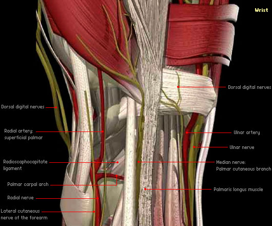 The nerves traveling through the wrist are subjected to constant bending and straightening of the wrist, which can lead to pressure on the nerves within their tunnels (