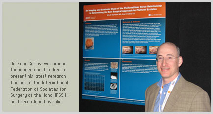 Presenting to nearly 2000 attendants representing medical facilities and organizations from around the world, Dr. Collins revealed new findings in specialized hand and upper extremity