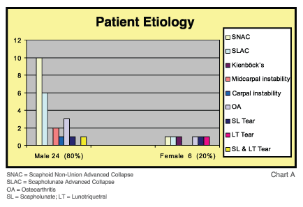 - There were 13 Scaphoid Nonunion Advanced Collapse (SNAC) patients treated with scaphoid excision and 4-corner fusion and two treated with only 4-corner fusion. Twelve Scapholunate Advanced Collapse (SLAC) patients were treated with scaphoid excision and 4-corner fusion and two were treated with scapho-luno-capitate (SLC) fusions. One Kienböck's patient was treated with scaphocapitate (SC) fusion.