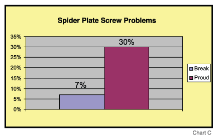 - Screws were proud in 30% of Regular Spider Plate patients. Breakage occurred in 7% - requiring revision surgery.