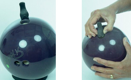 - Device to keep thumb straight can be placed in thumb hole of ball
