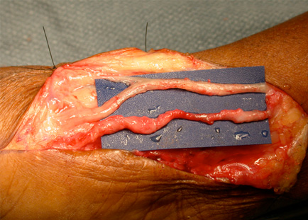 - Shear stress from repetitive motion (especially radial and ulnar deviation combined with flexion and extension of the wrist) results in inflammation of the tenosynovium.