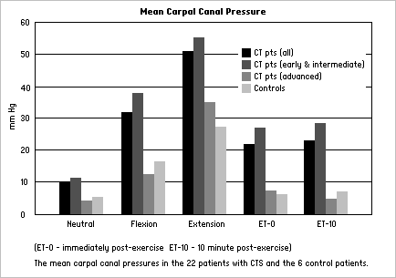 - Szabo's study suggests changes in carpal pressure with position and exercise in normal patients and CTS patients